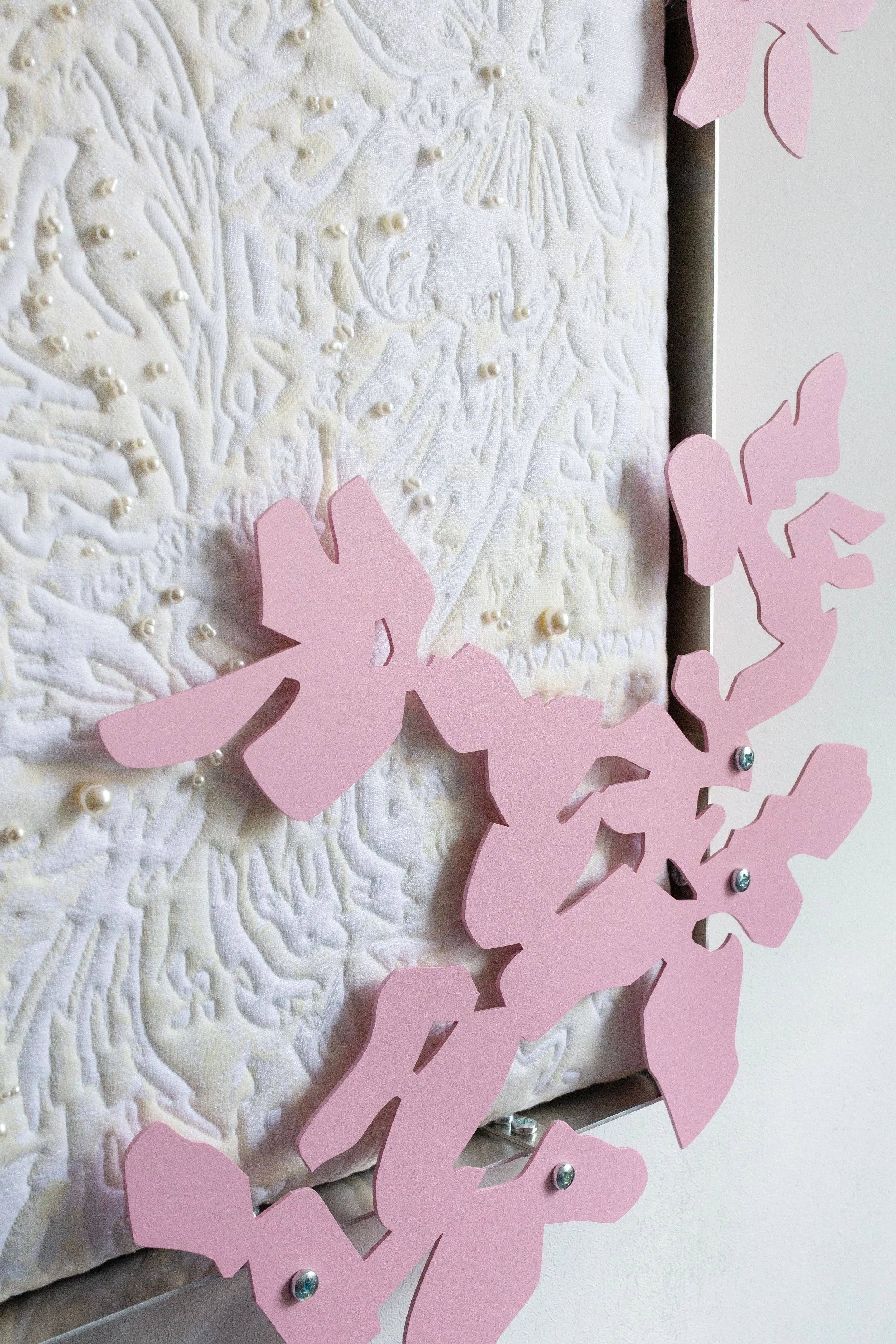 In spring, Céline visited the @louisianamuseum in Copenhagen. A sunny weekend in April that would change the course of her entire life. In the garden stood a towering magnolia tree in full bloom. Its white and pink blossoms stretched into the sky, surreal in their perfection. That moment of awe became a series of typographic ornaments, later embedded into the piece’s custom aluminum frame, developed in collaboration with Samuel Rynearson.